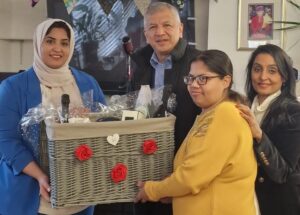 Our team enjoyed the musical entertainment and one of our residents, Siddika from our Sahara Lodge and Gardens service was delighted to win a wonderful hamper in our prize draw. Siddika was presented with her prize by Councillor Ashraf and Mr Desai.